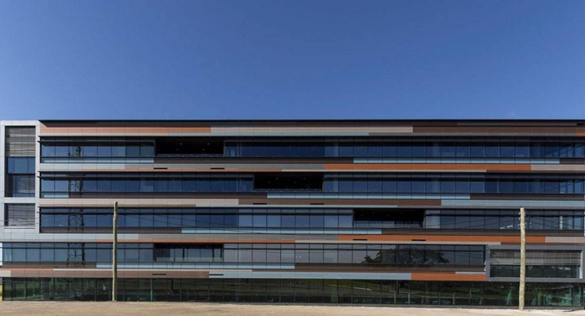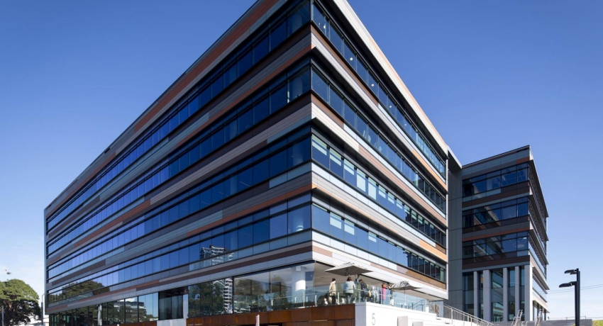 5 Murray Rose Avenue, Sydney Olympic Park (previously 7 Parkview Place). One of Sydney’s first 6-star-rated buildings by the Green Building Council of Australia. Envelex proudly performed a major role in the building’s success through the design, testing, manufacture and shipping of the entire high performance, thermally superior unitized curtain wall façade direct to the job site, complete with all high-performance glazing with unique pattern frit, aluminium composite panel, very colourful terracotta from Germany and large sunshading elements. Stringent testing to the demanding Australian codes proved the design and performance of the curtain wall to surpass the specification requirements.
